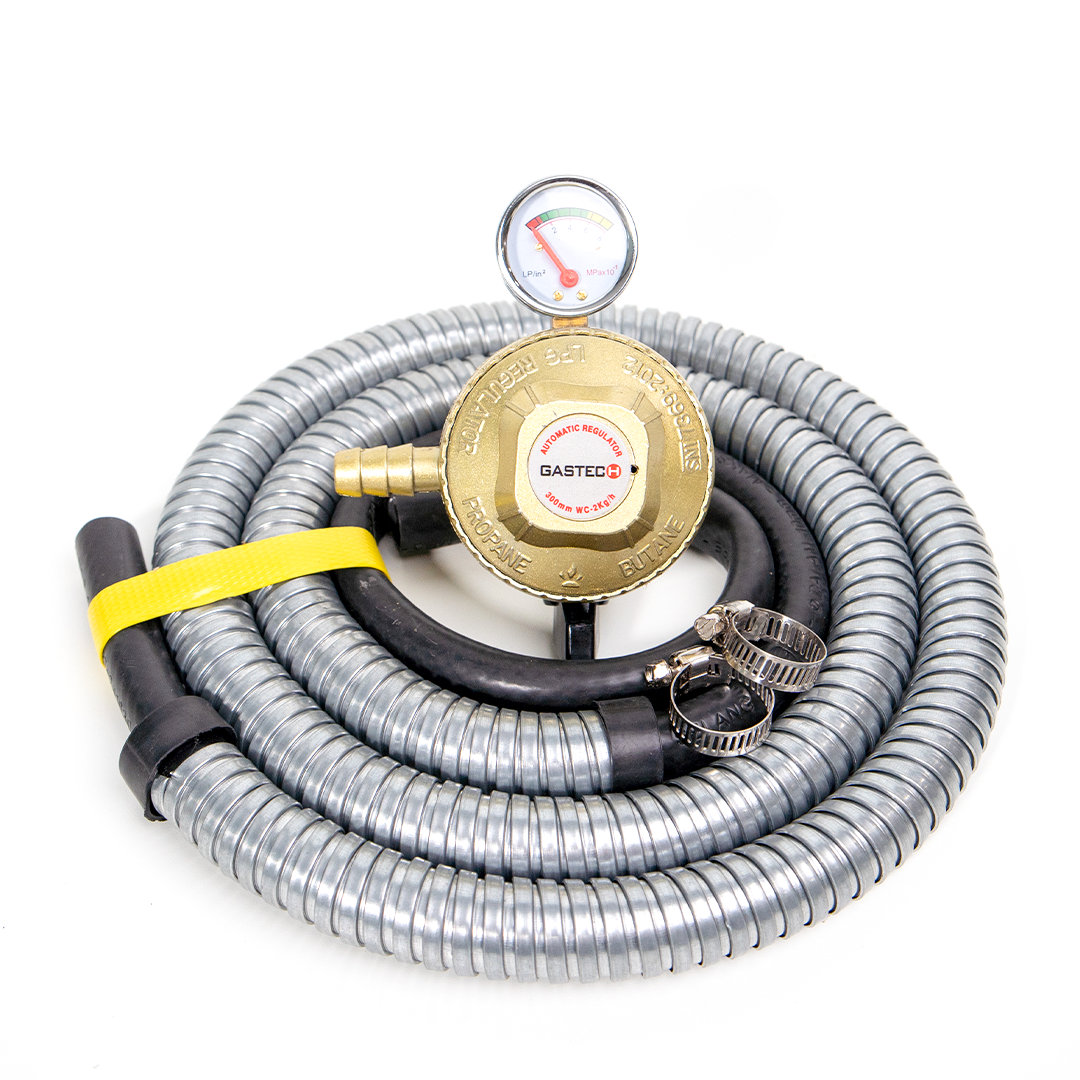 Paket lengkap berisi regulator bermeter dan selang fleksibel tahan tekanan. Regulator berbahan 100% Zinc Alloy memberikan daya tahan optimal dan keamanan jangka panjang.